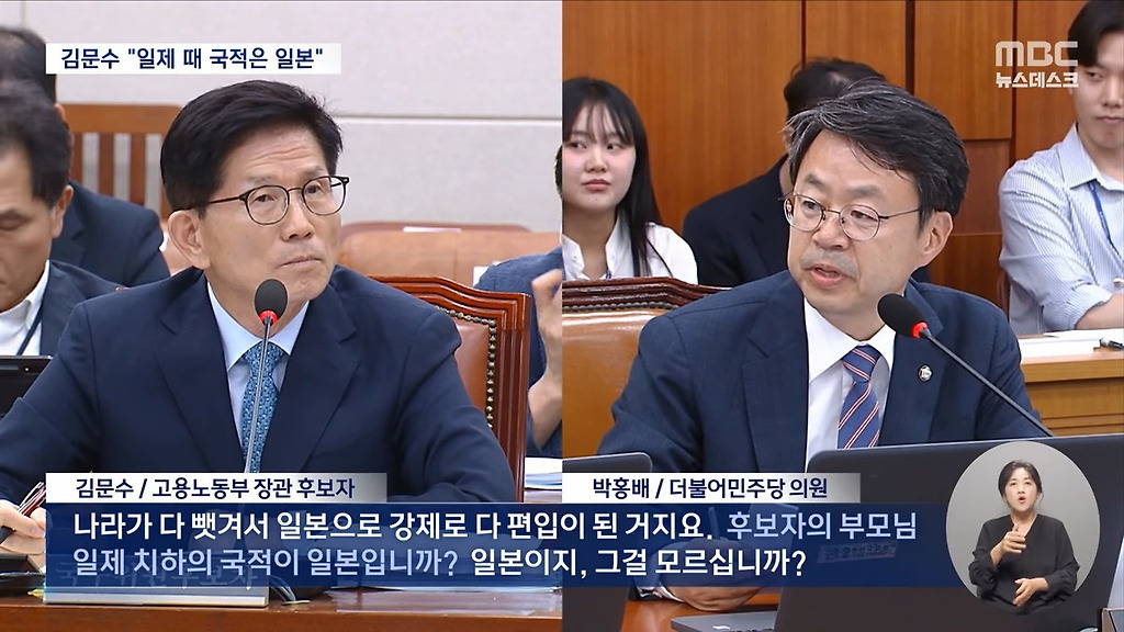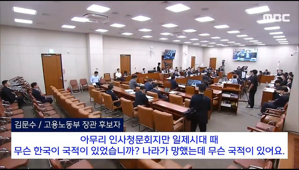 - 일본이지, 그걸 모르십니까? 무슨 말씀을 하세요! 아무리 인사청문회지만 일제시대때 무슨 한국이 국적이 있었습니까? 나라가 망했는데 무슨 국적이 있어요!