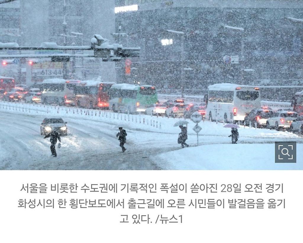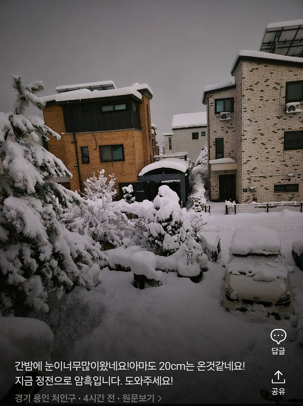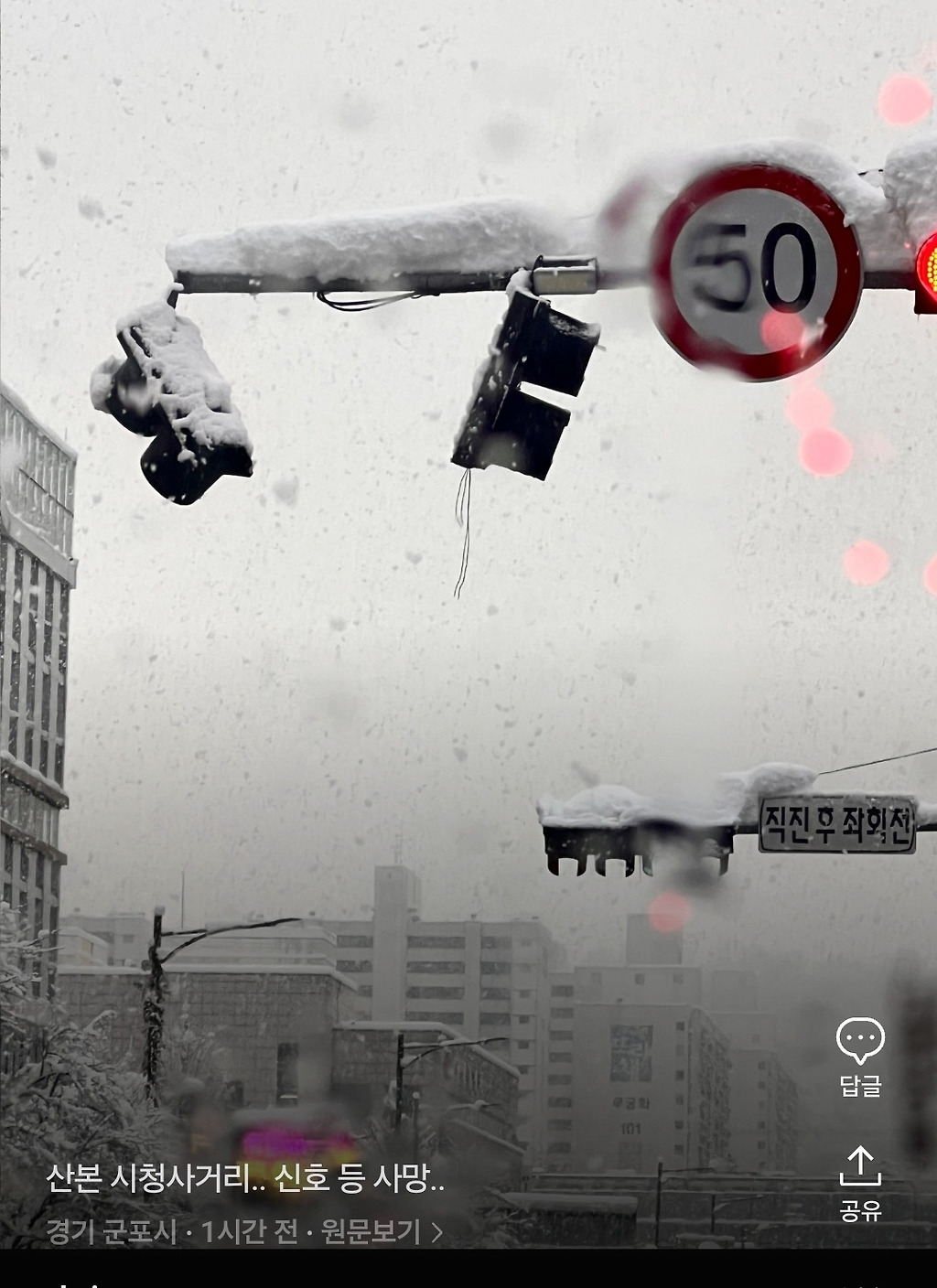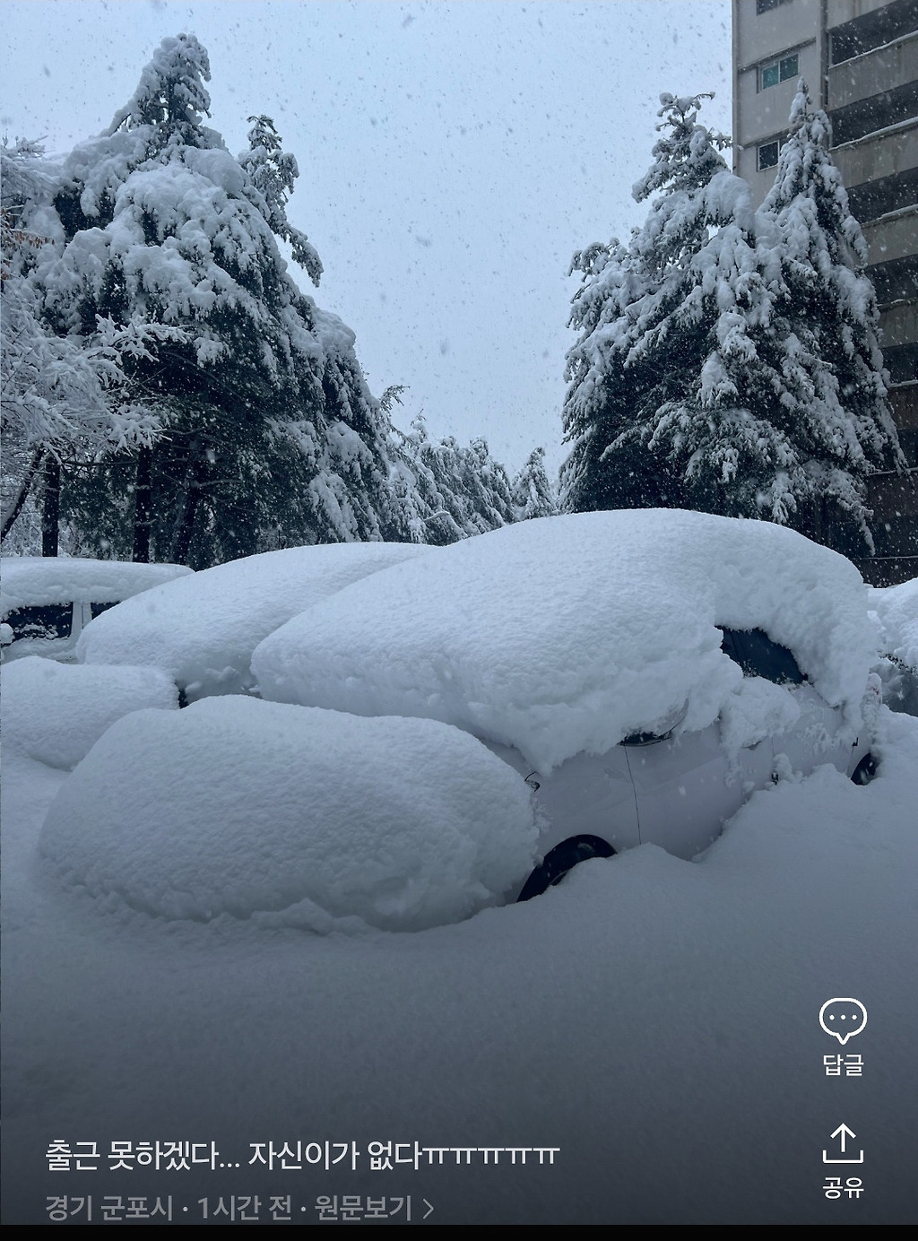 눈 무게를 이기지 못 한 나무들이 쓰러지고 있어서