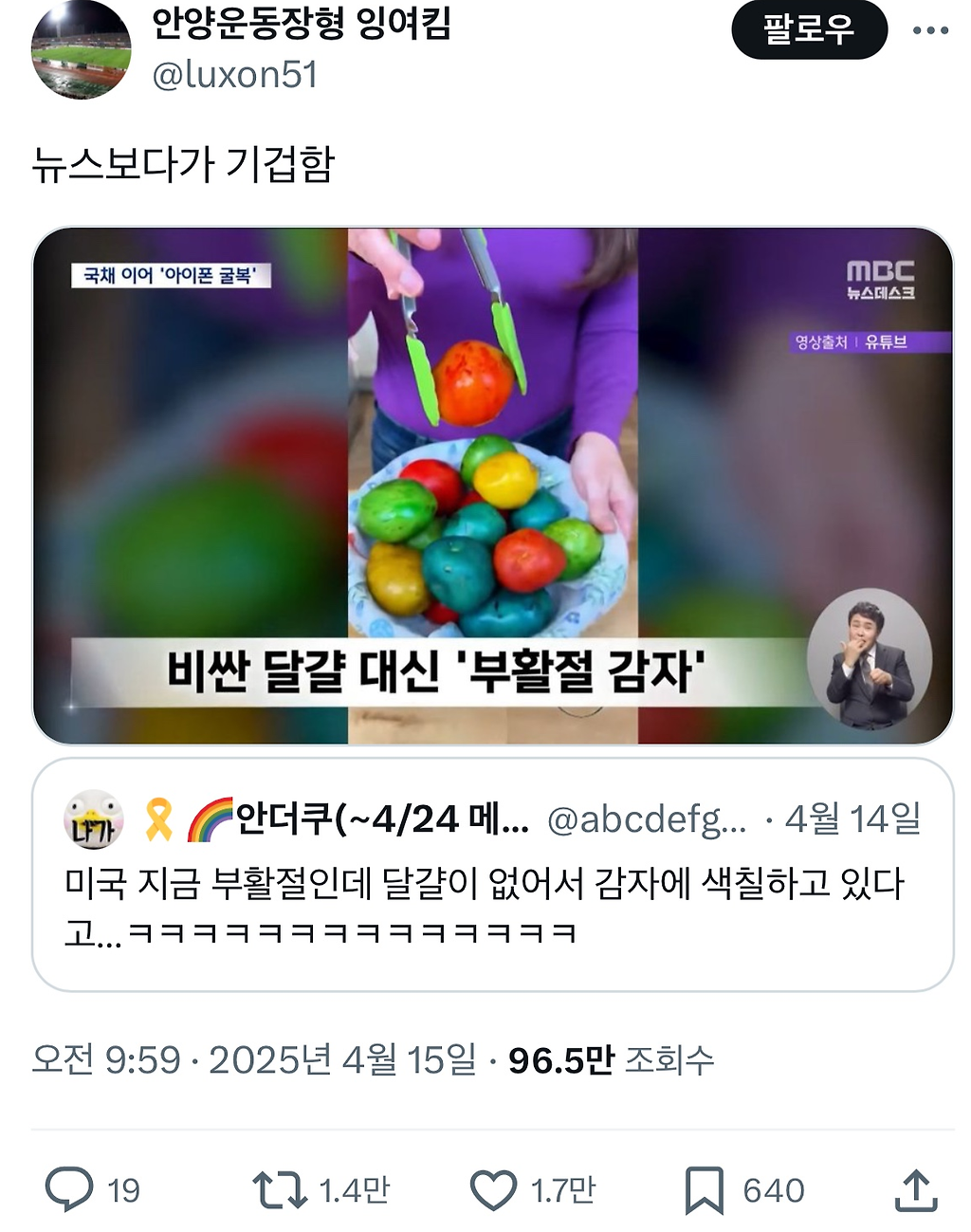 미국 지금 부활절인데 달걀이 없어서 하는 일