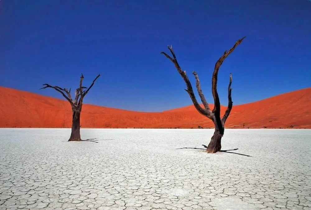 세계에서 가장 오래된 사막 중 하나로 평가받는 나미브는 나미비아 전 해안을 따라 남아공과 앙골라까지 이어진다. 최대 300m 높이, 32km 길이에 달하는 초거대 사구와 철분이 많아 붉게 빛나는 모래가 특징이다. 매일 아침 해안에 깔리는 짙은 안개와 ‘스켈레톤 코스트’의 난파선, 그리고 웰위치아 같은 특이한 식물이 만들어내는 풍경은 이 세상 같지 않은 신비로움을 자아낸다.