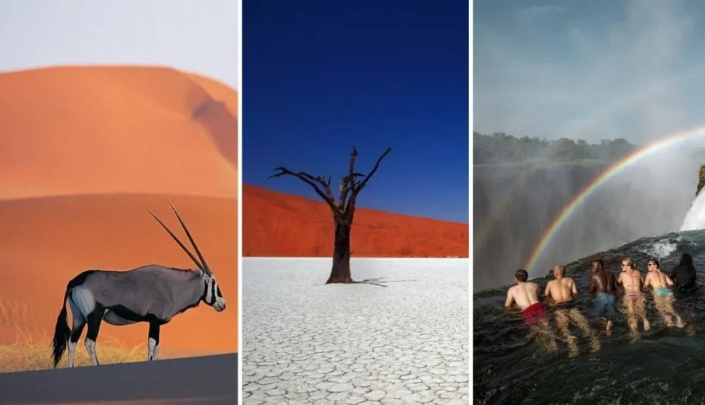 잠베지 강이 떨어지며, 형성된 빅토리아 폭포는 아프리카를 대표하는 장대한 폭포다. 토착 언어로 ‘우레와 같은 연기’를 뜻하는 이름을 가진 이 폭포는 매년 약 1천만㎥의 물이 초당 쏟아져 내리며, 천둥 같은 물보라를 일으킨다. 모험가들은 폭포 끝에 위치한 ‘데빌스 풀’에서 아찔한 수영을 즐기기도 한다.