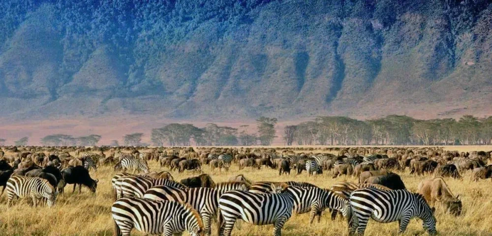 약 200만 년 전 거대한 화산이 붕괴해 형성된 세계 최대의 비활동 칼데라로, 면적은 260km²에 이른다. 이곳은 사자, 하이에나, 하마, 기린, 얼룩말, 멸종위기 검은코뿔소까지 다양한 동물이 사는 거대한 ‘아프리카의 에덴동산’이다. 수 세기 동안 살아온 마사이족도 거주하지만, 보존 문제로 정부와 갈등을 빚고 있다.