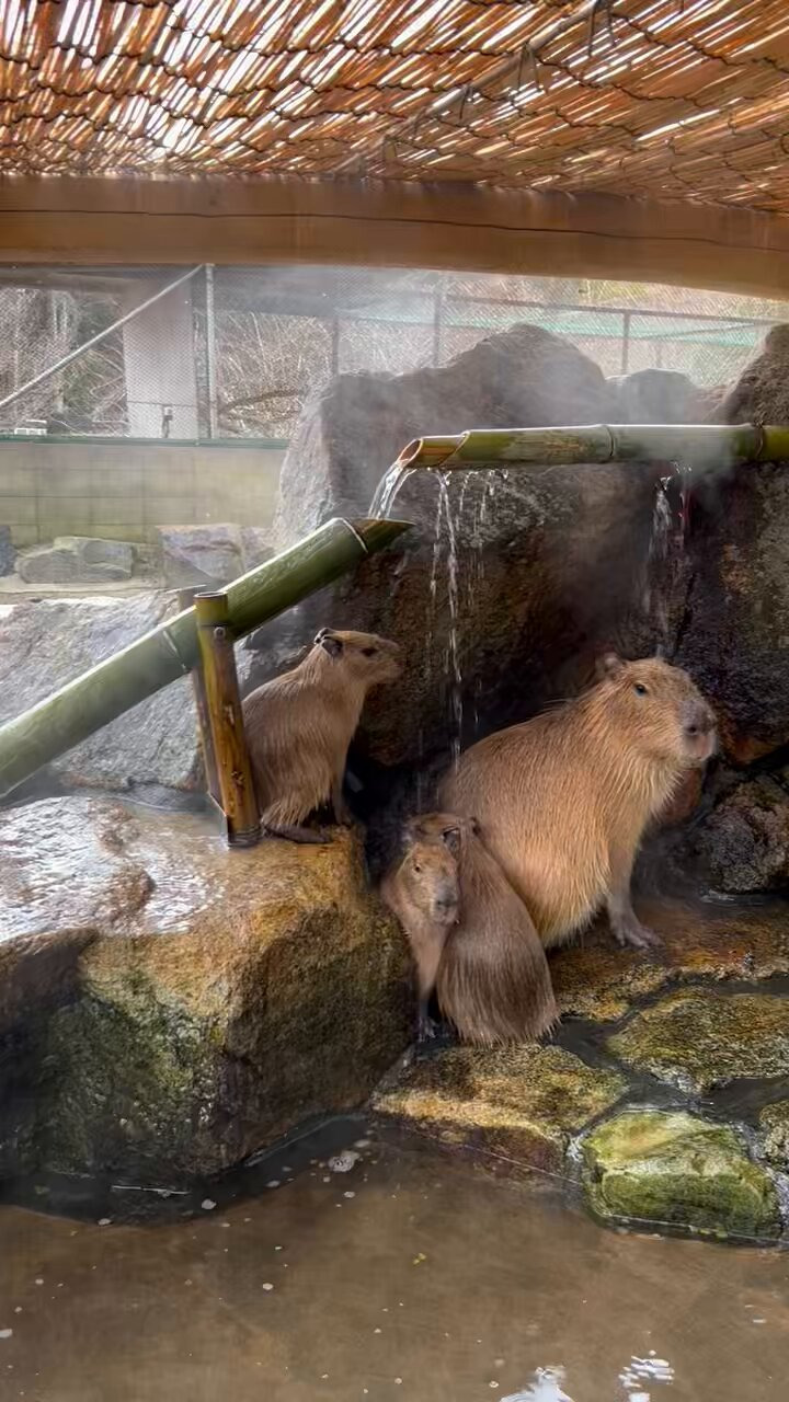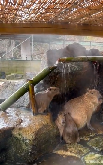 물벼락을 맞아도 덤덤 의연한 카피바라