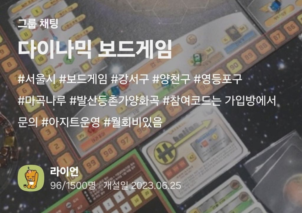 모임 참여를 원하시면 오픈챗 다이나믹 보드게임 검색하여 가입방으로 들어와주시면 되요~