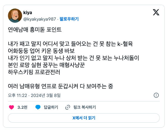2. 누나가 누구 좋아하는지 모르겟고 일단 자기 >매형로망 충족시켜줄 남자 찾고 있던 철현