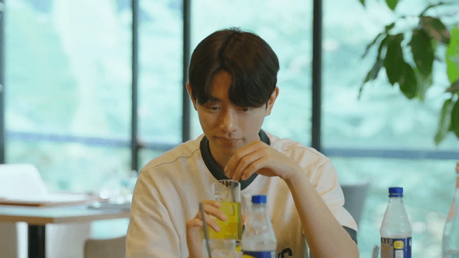노래 부르는 남출한테서 시선 안떼고 소주 원샷 때리기