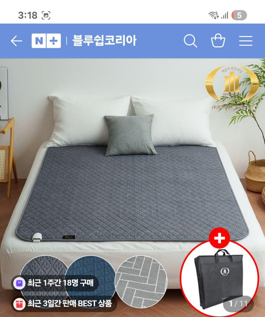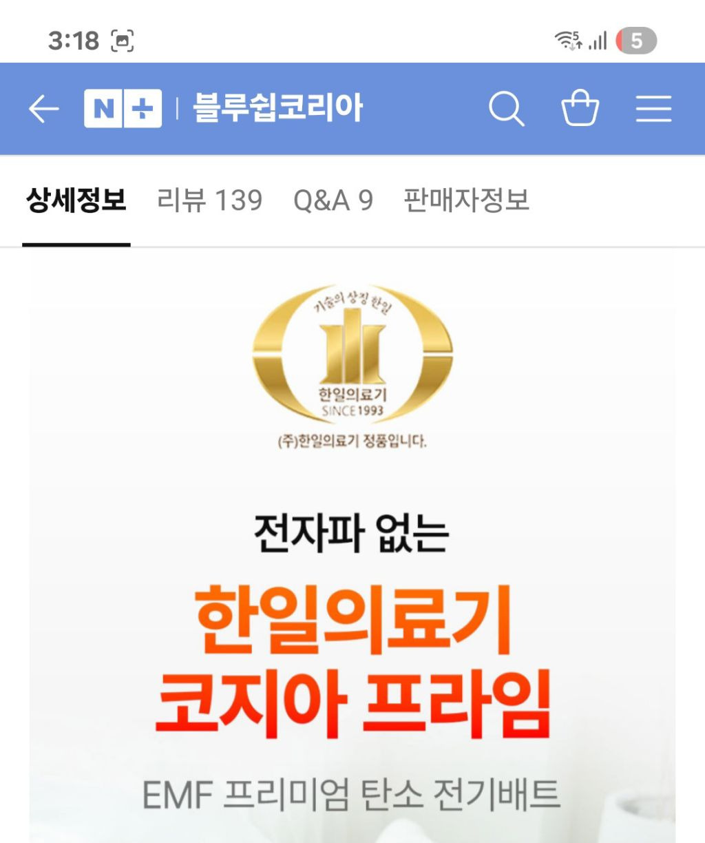 한일의료기 탄소 전기매트 | 전자파 없는 EMF 인증 프리미엄 전기요 : 블루쉽코리아