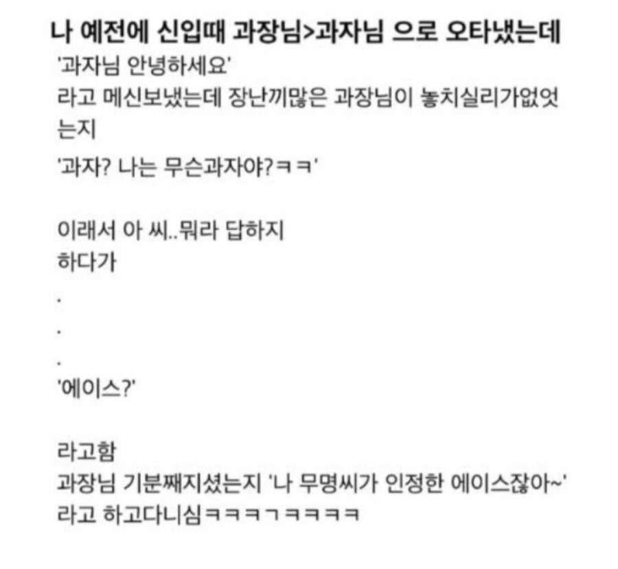 과장님을 과자님으로 오타 냈을 시 음기응변