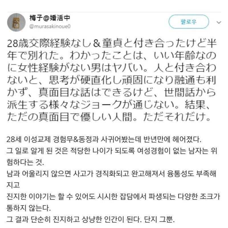28살 모솔 아다랑 사귄 일본녀가 말해주는 후기