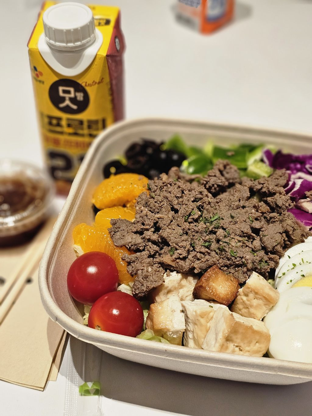 샐러드는 뭐 여러분들 다 아시는 맛이고저 맛밤 프로틴 진짜 미지근하게 녹인 바밤바 맛 ...돌도 씹어먹는 왕성한 식욕을 가진 제가 지금 겨우 반절만 마시고 째려보고 있음