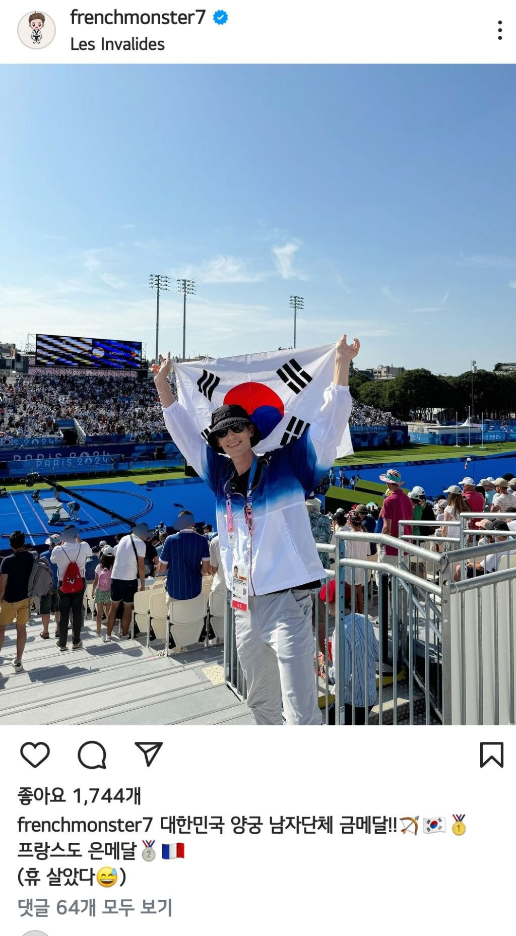 파비앙 파리올림픽 양궁관전 인스타 근황 jpg