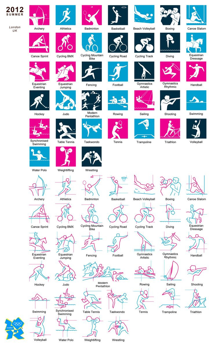 단점이라면 역시 거의 반세기 넘게 유지해온 뮌헨 스타일이 주는 대중들에게 “학습 된 의미 전달력”은 가질 수 없다는 점! 뮌헨 스타일이 한눈에 무슨 종목인지 쉽게 알아볼 수 있는 이유는 픽토그램 자체가 굉장히 아이코닉하고 잘 정제 된 이유도 있지만, 50년이 넘는 세월동안 다양한 바리에이션으로 반복되다 보니까 사람들이 대충 스치면서 봐도 “아 양궁인듯? ㅇㅋ” 하고 반사적으로 인식하게 되는 이유도 크다는거지