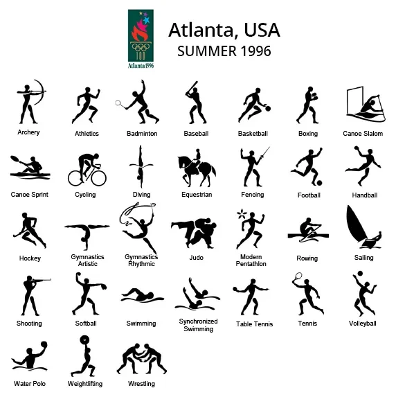 역대 흑자폭 가장컸다는 아틀란타 올림픽, 진짜 이때 미국 올림픽 위원회는 돈미새 그 자체였다고 하네? 아무튼, 픽토그램에만 다시 집중해서 설명하자면, 이때 아틀란타 올림픽의 컨셉은 “고대 그리스 올림픽으로의 회귀”였다고 해, 왜냐면 애틀란타 올림픽이 딱 현대 올림픽이 탄생한지 100주년이 되는 아주 기념비적인 년도 였거든? 그래서 올림픽 로고도 굉장히 그리스적인 디자인 요소가 등장해 (그런데 그렇게 돈을 밝혔다고…?)