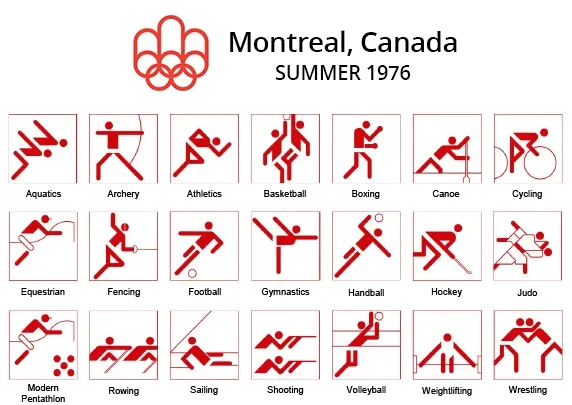 사실상 뮌헨 올림픽의 재탕, 그러나 몬트리올 올림픽이 이 기조를 유지하면서 이러한 픽토그램의 문법적 표현이 공고해지는 효과가 생김. 그리고 유도 픽토그램을 좀 더 역동적으로 바꾼 점도 포인트! 확실히 뮌헨 올림픽 픽토그램보다 유도라는 운동의 역동성이 훨씬 강조됨