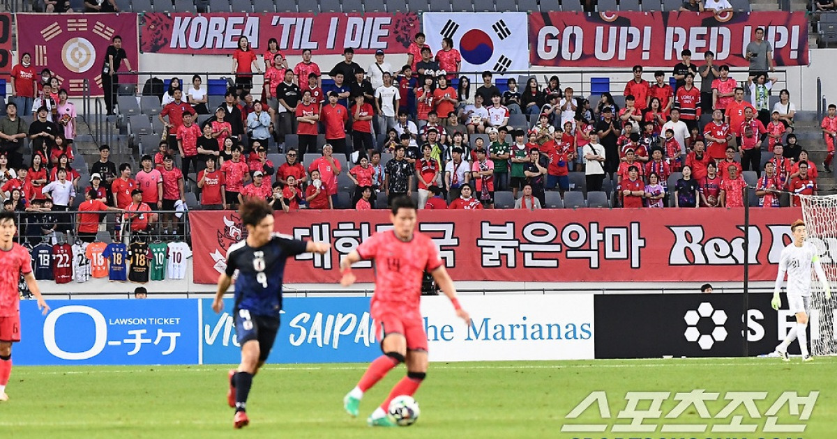 [스포츠조선 윤진만 기자]한 일본 매체가 15일 용인미르스타디움에서 열린 한국과 일본의 2025년 동아시아축구연맹(EAFF) E-1 챔피언십(동아시안컵) 현장에서 벌어진 '기묘한 광경'에 주목했다. 일