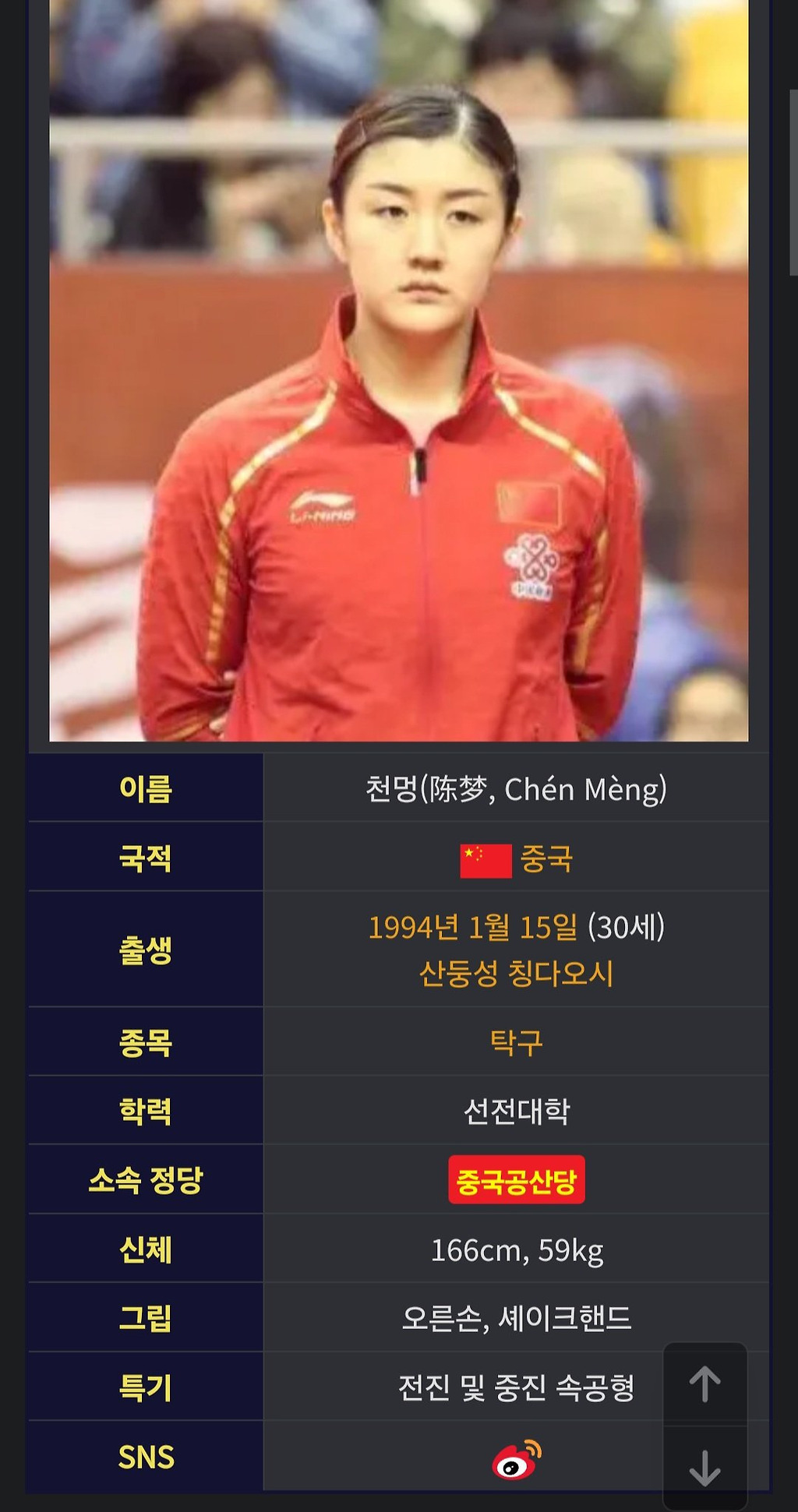 세계 랭킹 4위 중국의 천멍