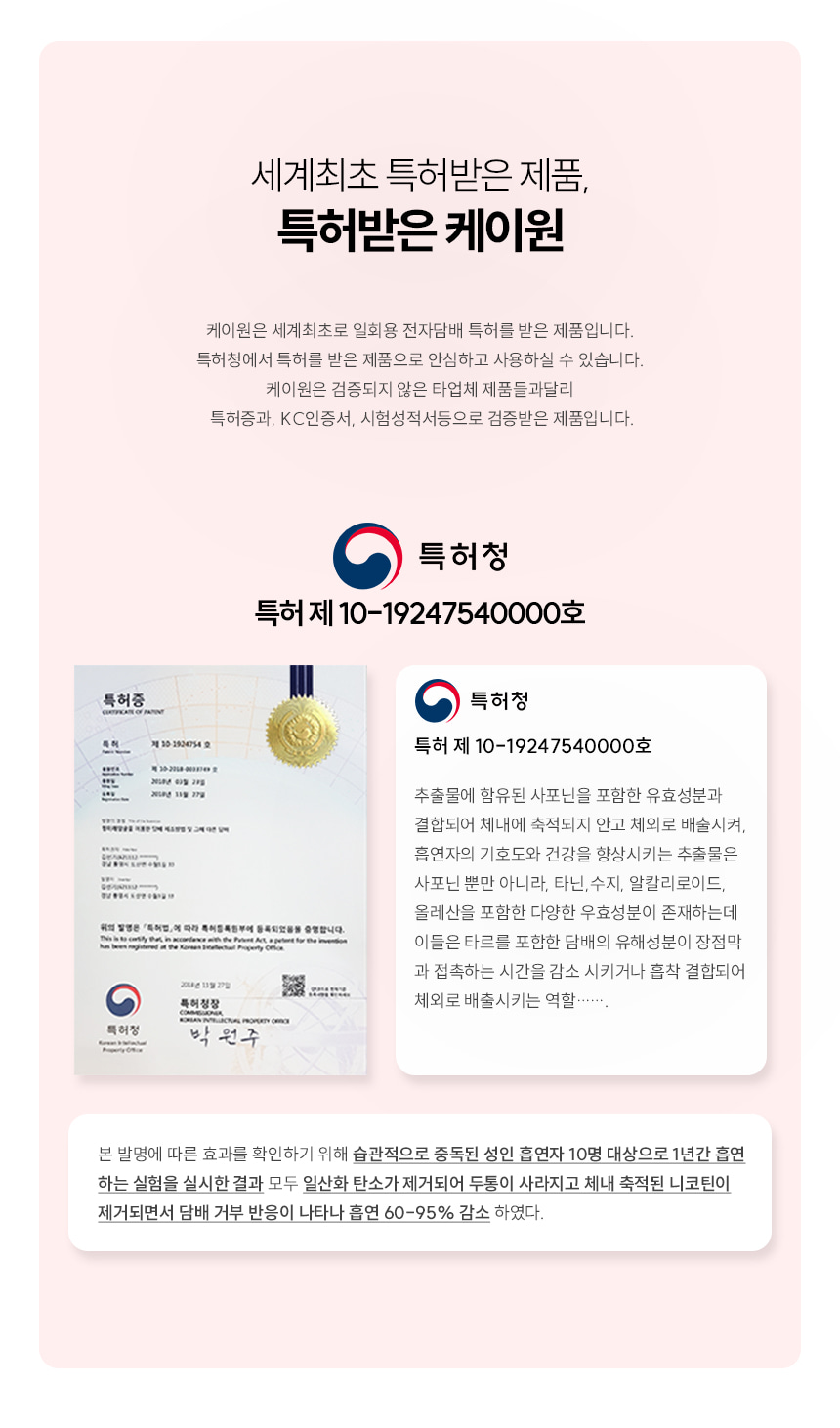 특허의 특징은 흡연시 장내 니코틴.타르등