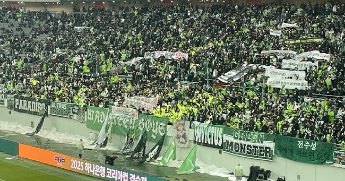 [인터풋볼=주대은 기자(상암)] 전북 현대 팬들이 심판진을 향한 분노를 숨기지 않았다. 전북은 6일 오후 1시 30분 서울월드컵경기장에서 열린 2025 하나은행 코리아컵 결승전에서 광주에 2-1로 승리