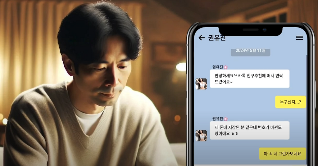 어느날 모르는 이성으로부터 카톡이 옵니다.