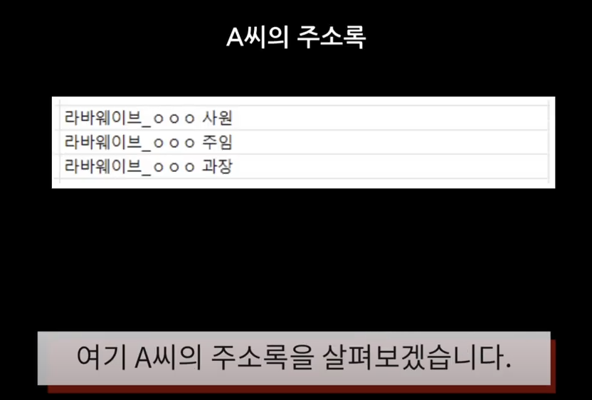 그 A씨의 주소록에 위와같은 형태로 저장이 되어 있다면, 가해자는 '라바웨이브'가 뭔지는 모르겠지만,
