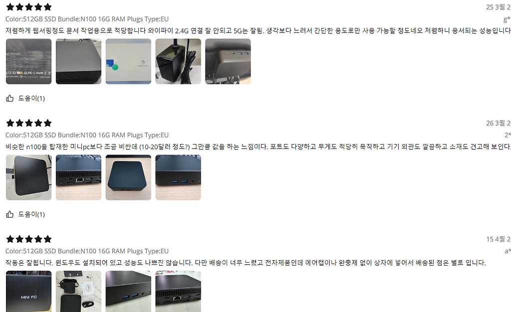 작은데 성능이 N100인만큼 일반적인 문서용으로 좋습니다. 유튜브 보는데도 문제없고요. 디자인도 무난해 어디에 놔둬도 잘 어울리네요. 소음도 느껴지지않아서 이점은 마음에 쏙 듭니다. 모니터 하나 구입해서 일체형 PC용도로 만들어서 사용하면 딱 좋을 것 같습니다.
