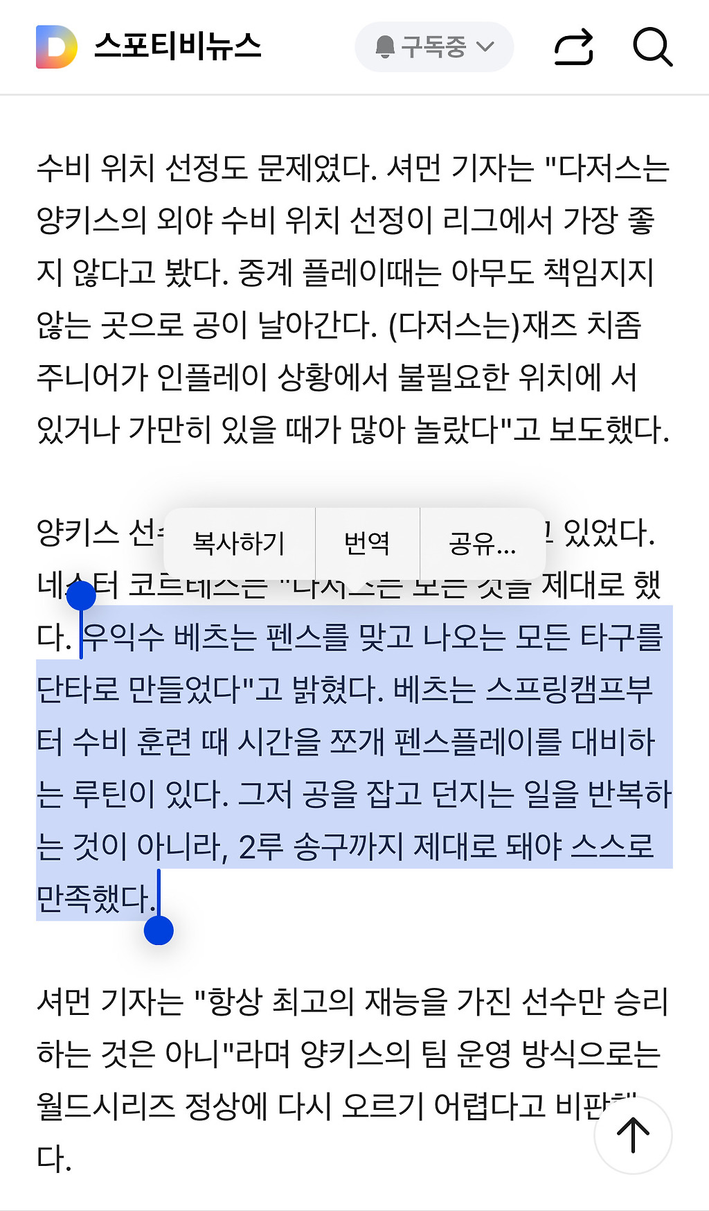 수비를 잘한다, 배팅을 잘한다의 정도가 아니라…