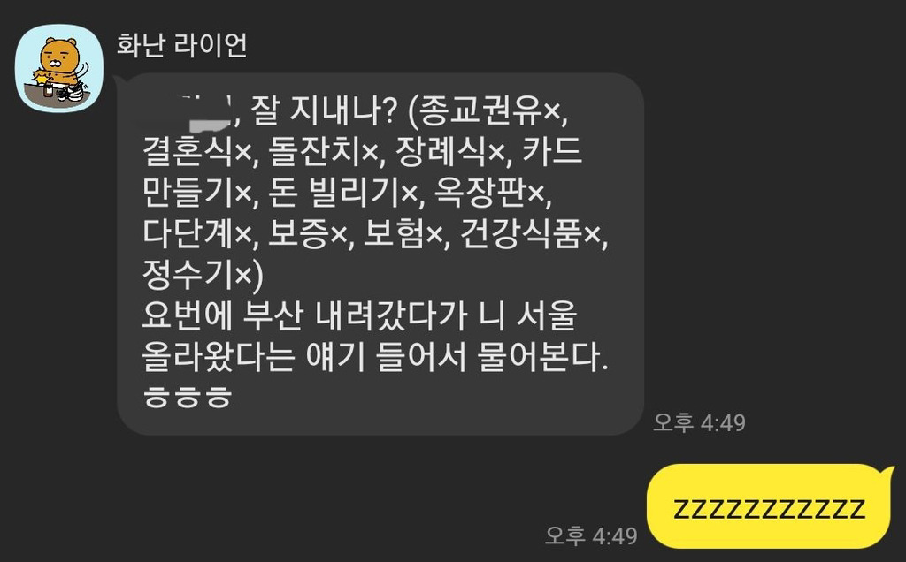 잘 지내나?(종교 권유 x 결혼식 x 돌잔치 x)