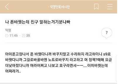 나 폰 바꿨는데 친구 말하는 거 기분 나빠