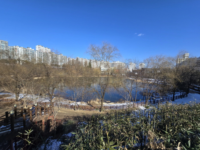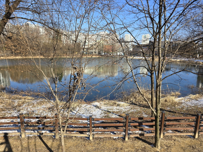 중외공원 팔각정아래 무지개다리를 건너면 운암제와 용봉초록습지
