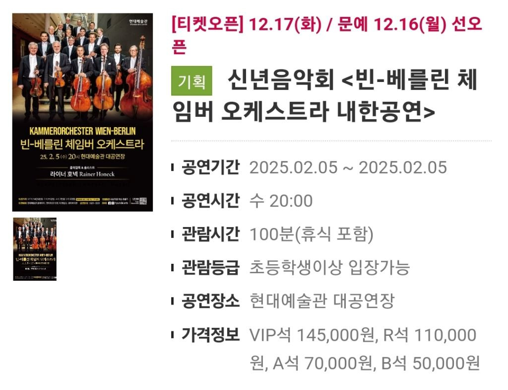 ❌ 빈-베를린 체임버 오케스트라 내한공연 함께 관람하실 분 계시면 신청댓글 달아주세요. 오후부터 모여서 일정 소화하고자 합니다.(반차나 연차 가능하신 분 환영합니다)