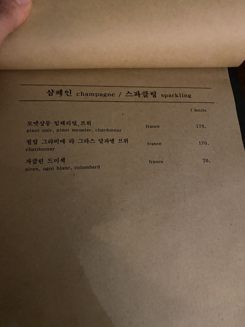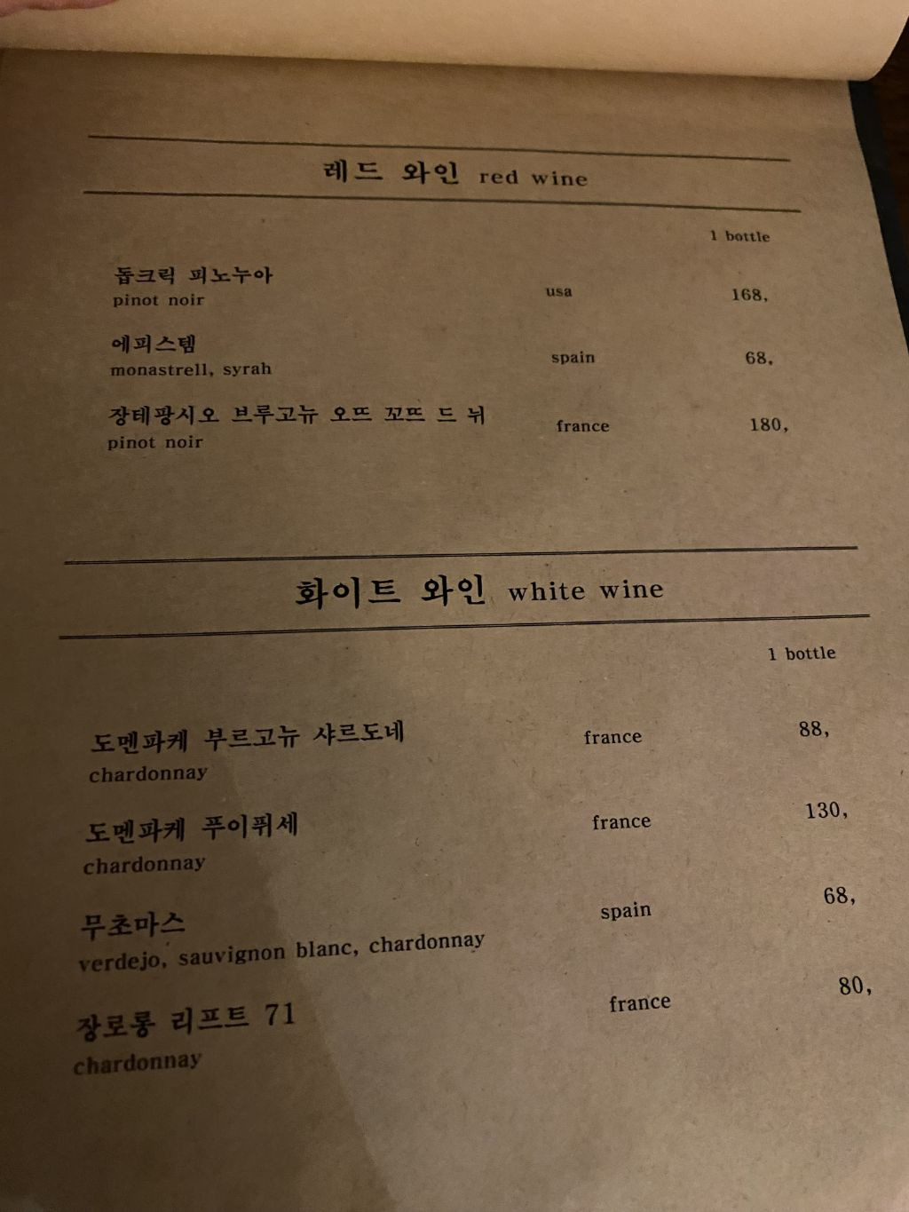 ㅡ 위스키 메인, 와인 서브의 메뉴 리스트 구성
