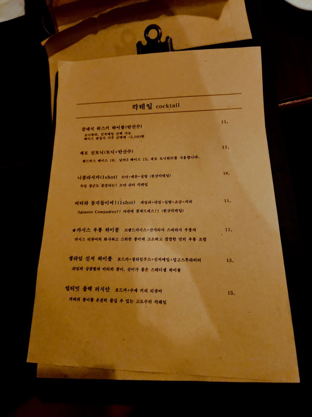 ㅡ 칵테일도 10여종 있으며, 요청시 오마카세로 다양한 칵테일 즉석 제조 가능
