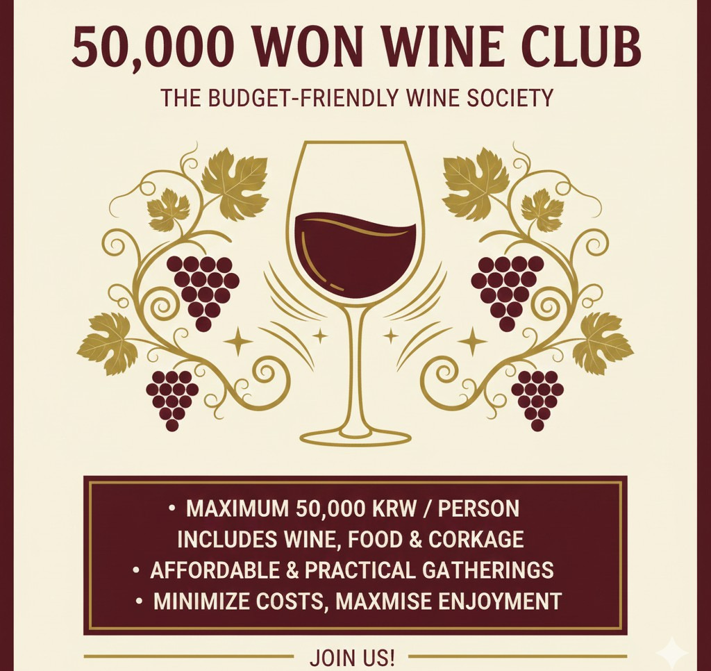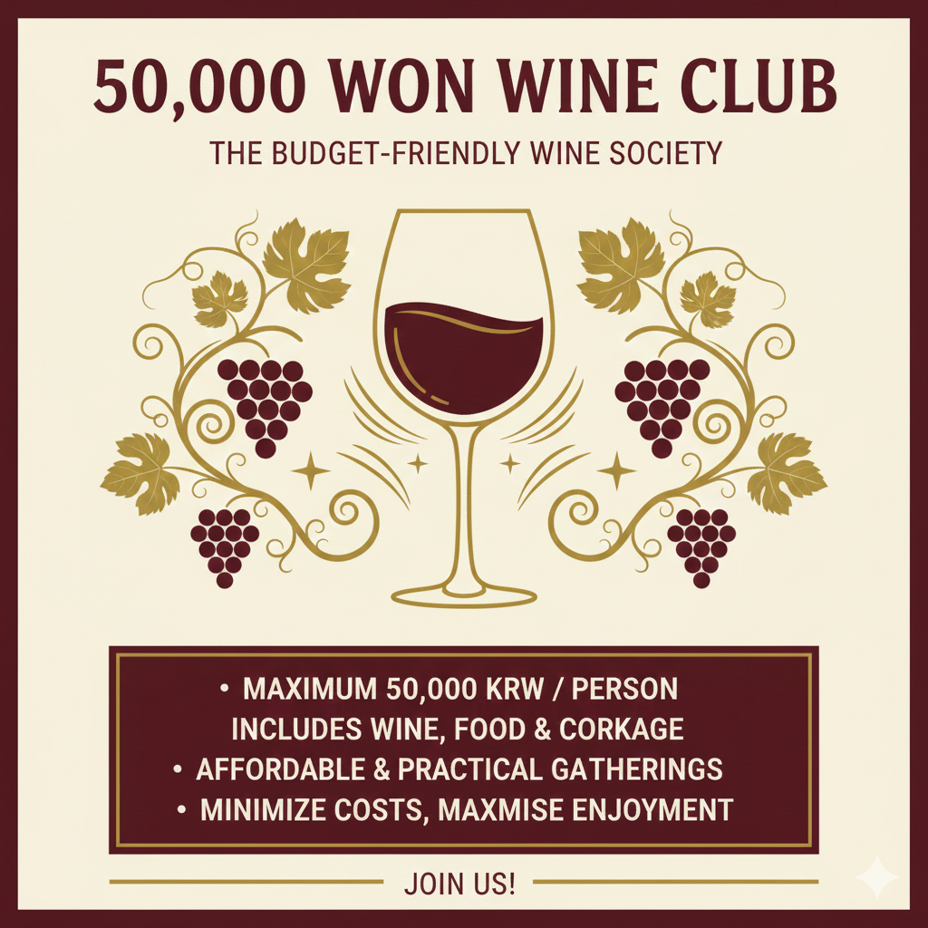 5만냥 와인클럽(망빈)은 모임 전체회비(와인값 + 식대/콜키지)를 5만원 범위내에서 책정, 참석자들의 회비부담을 최소화해서 모임을 진행하는 가성비 실용 와인동호회입니다.