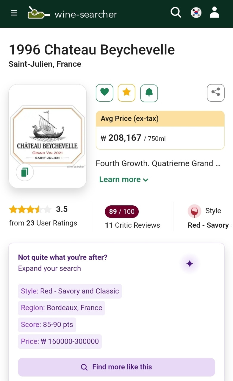 | **Amiral de Beychevelle** | 베이슈벨의 **세컨드 와인**입니다. '제독'이라는 뜻으로, 메인 와인보다 합리적인 가격에 베이슈벨의 스타일을 경험할 수 있습니다. |