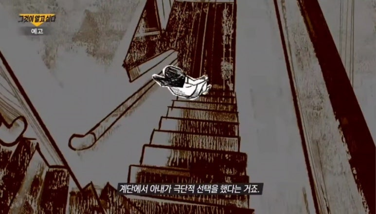 부검 결과, 경부 압박 질식사로 사망한 가나코 씨. 검찰은 1층 침실 매트리스에서 그녀의 소변자국과 피 섞인 침이 발견됨에 따라, 남편 박 씨가 팔로 그녀의 목을 졸라 질식사시켰다고 추정했다. 이후 계단 위에서 떨어뜨려 사고로 사망한 것처럼 위장했다는 것인데, 계단에서는 소변 자국이나 묶인 재킷의 흔적이 발견되지 않았기 때문이었다.