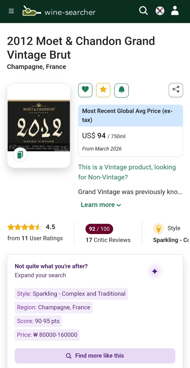 2. 모엣 샹동 그랑 빈티지 브뤼 2012 Moet & Chandon Grand Vintage Brut 2012 ㅡ Champagne, France