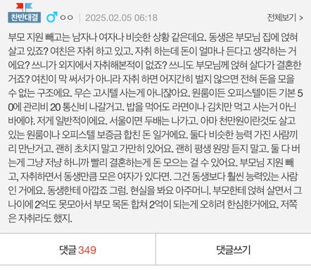 👋 결혼 • 부부생활 • 우리만의 이야기 💒 이곳은 결혼, 부부 갈등에 대해 이야기 나눌 수 있는 공간입니다.