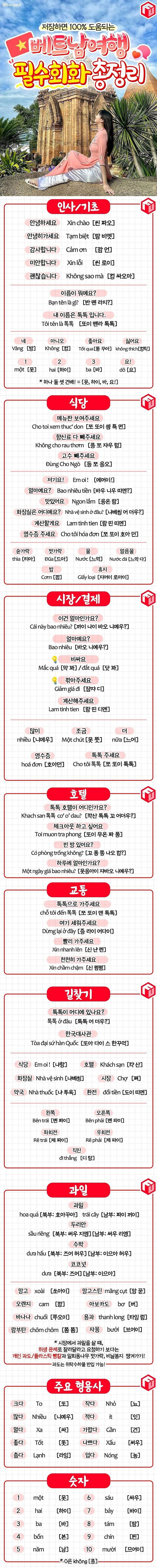 베트남여행 필수회화 총정리