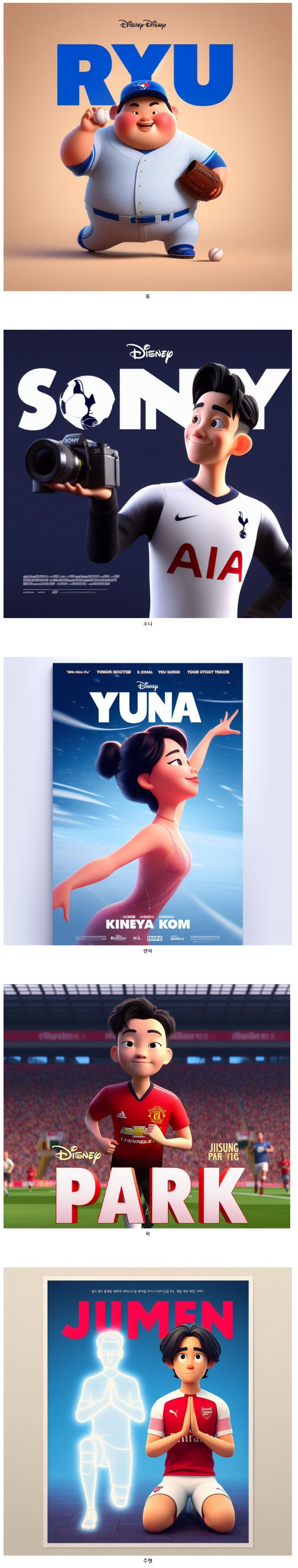 AI가 만든 한국 스포츠 스타들을 주제로한 디즈니 영화 포스터