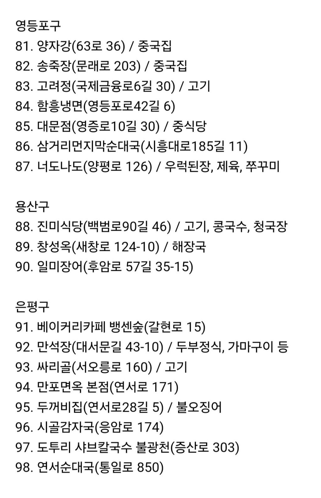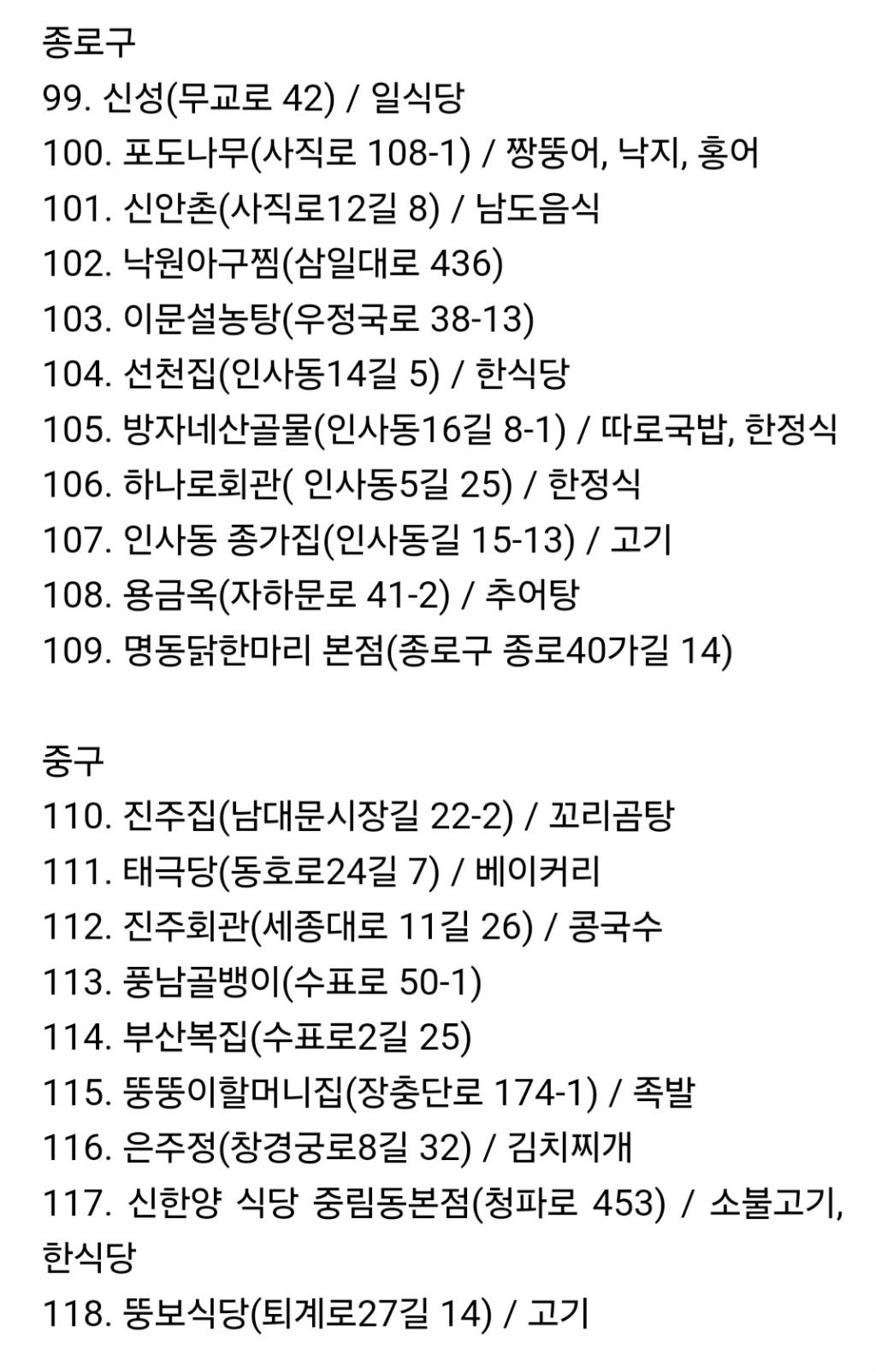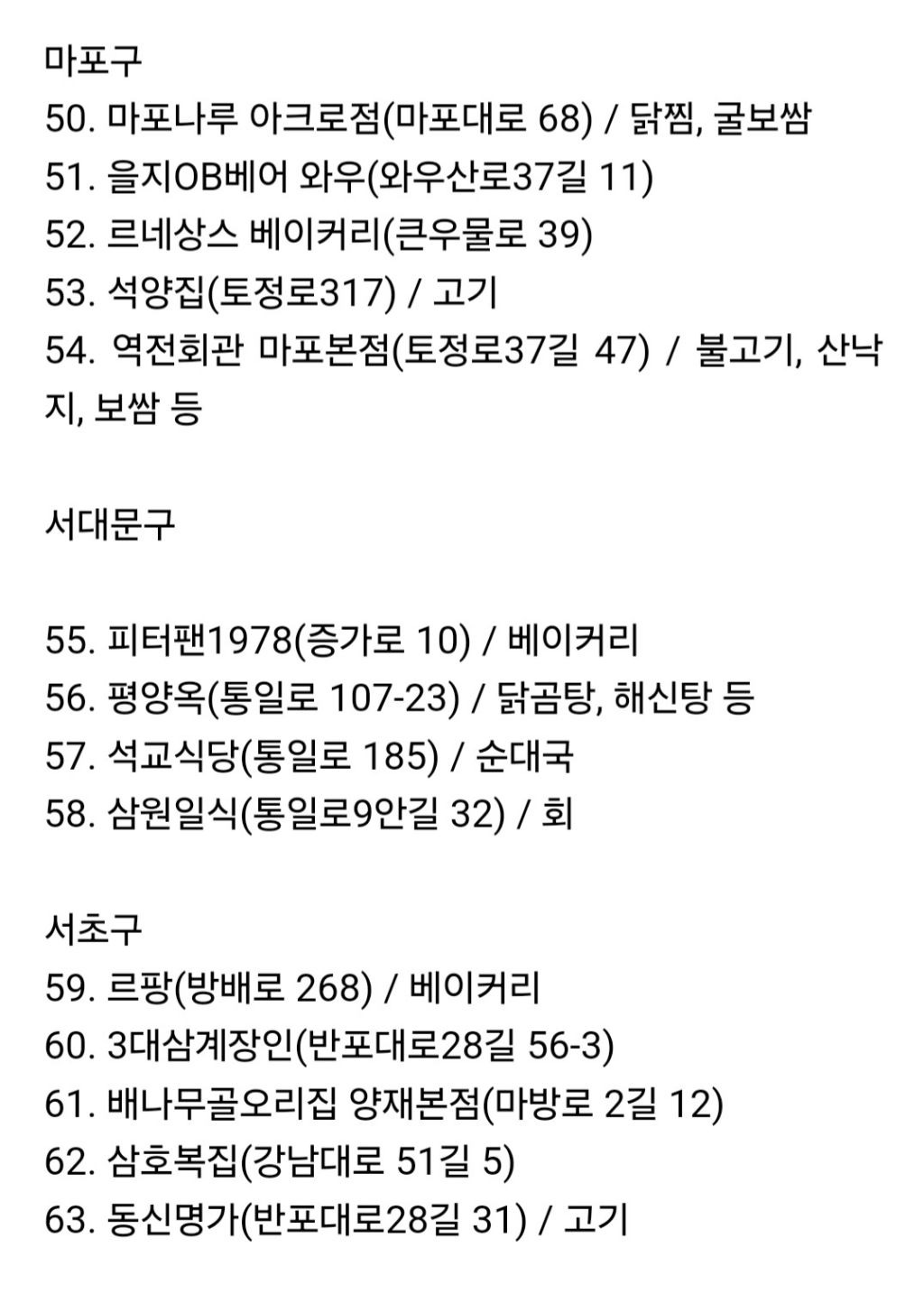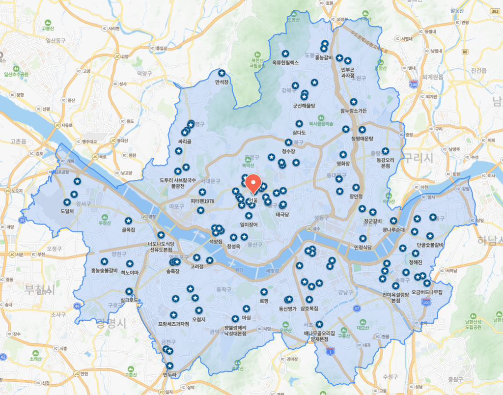 공무원들이 인증한 맛집 백년가게(서울) 지도 정리