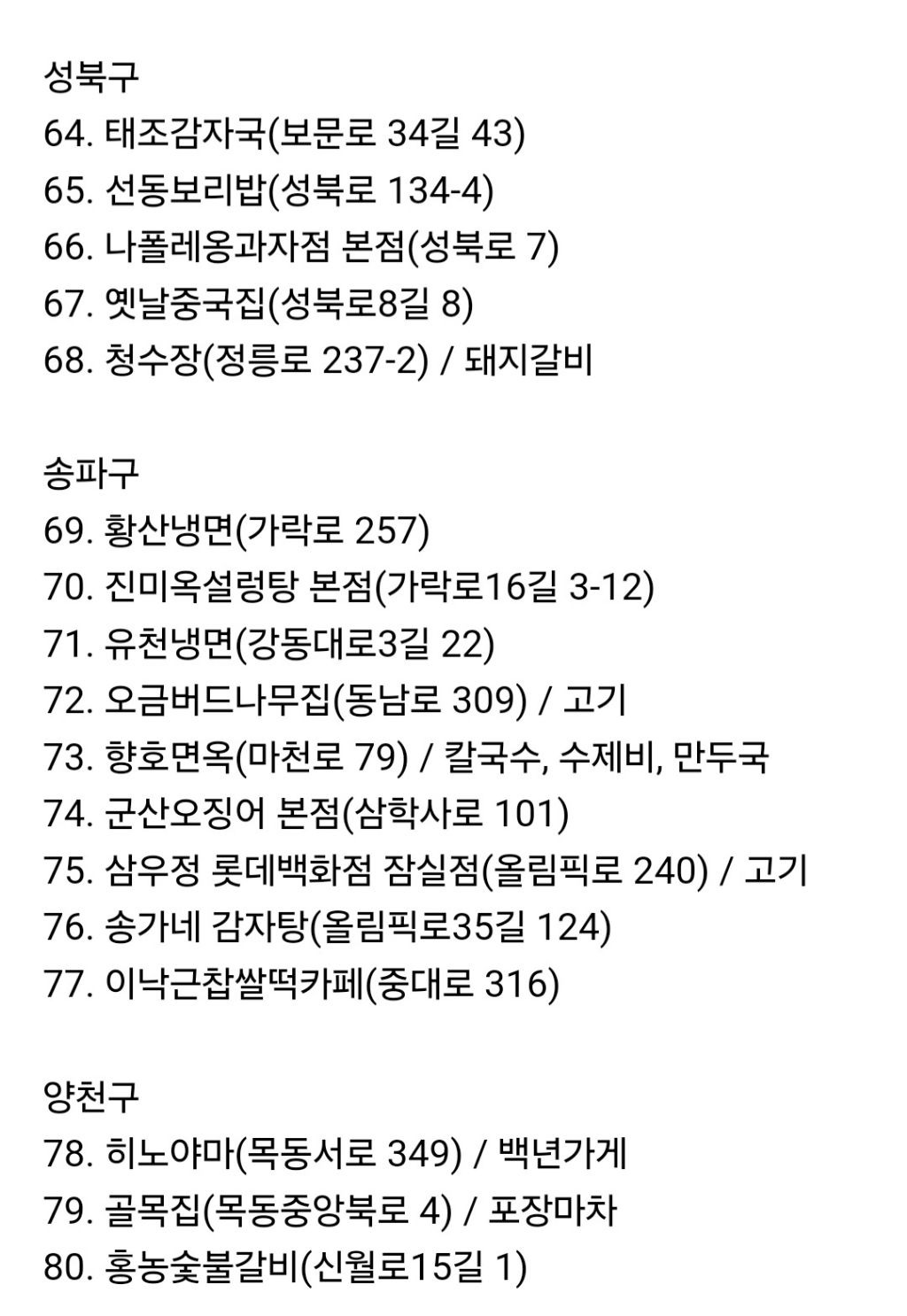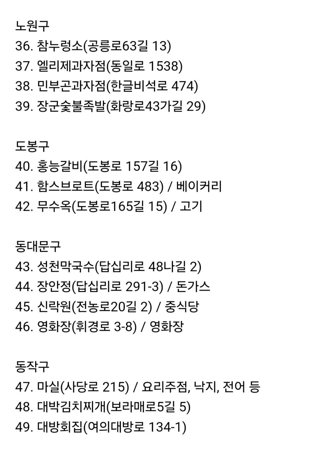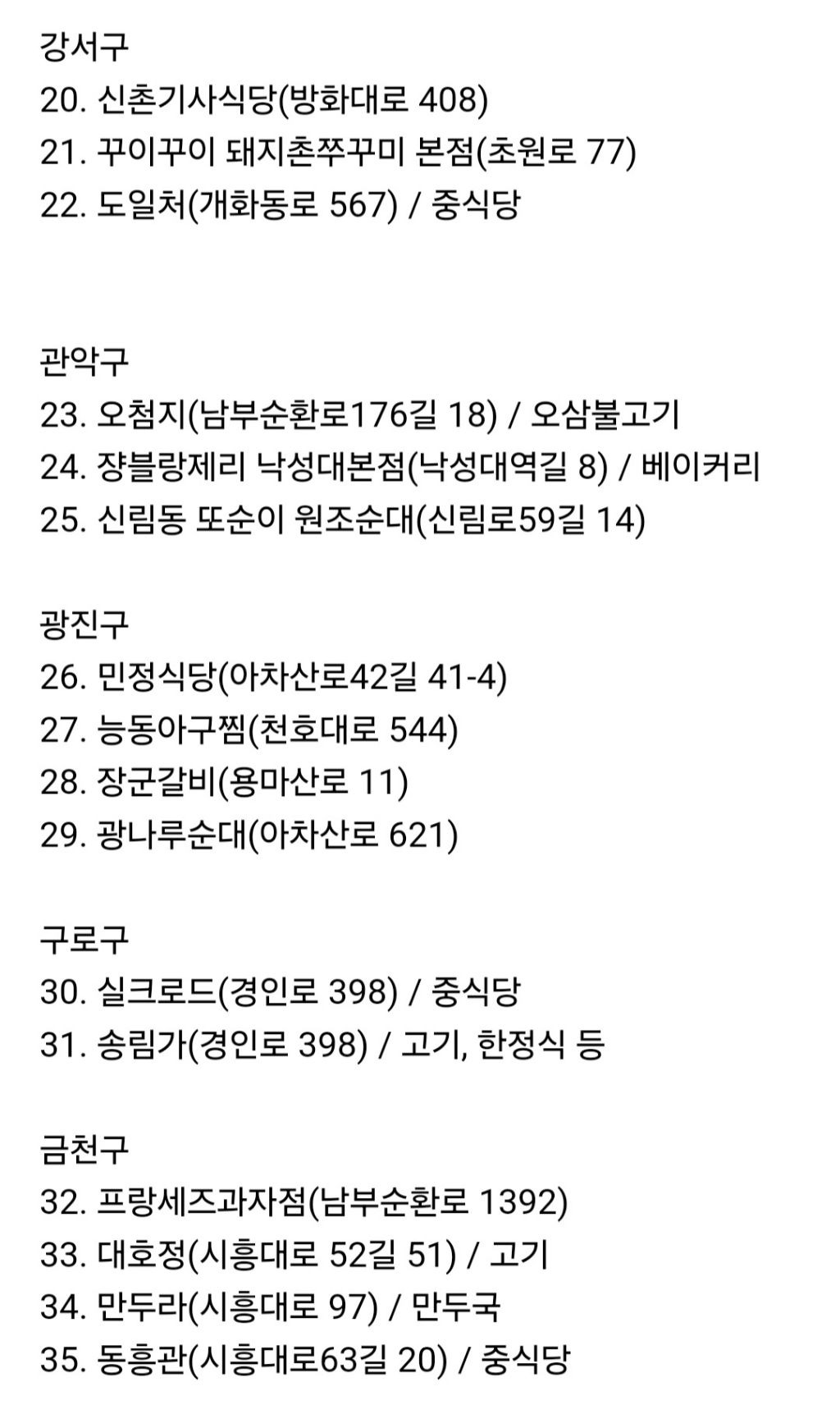 공무원들이 인증한 맛집 백년가게(서울) 지도 정리