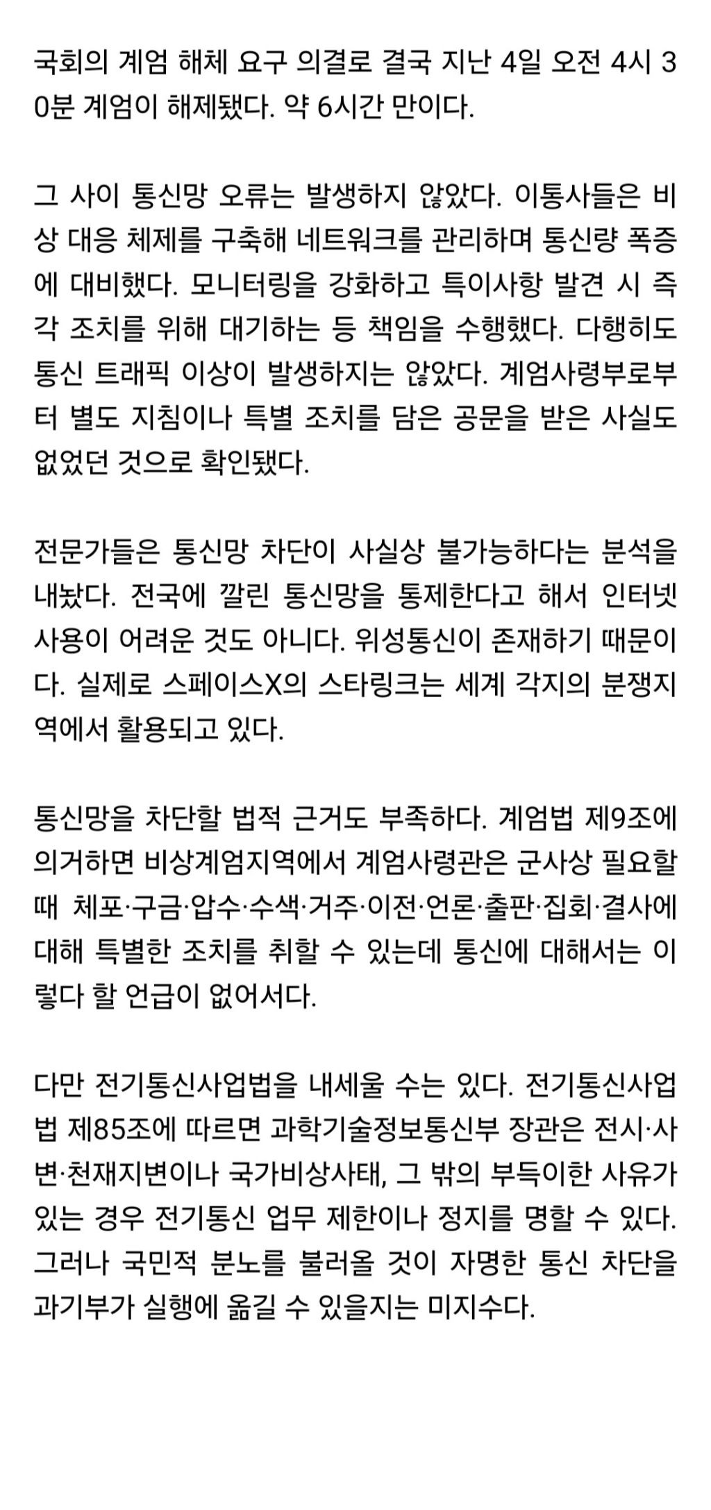 계엄령 떨어지면 휴대전화 먹통된다?…이통사 “통제 불가능할 것”