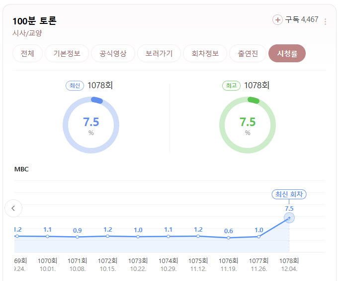 2024년 12월 4일 백분토론 방송 시청률