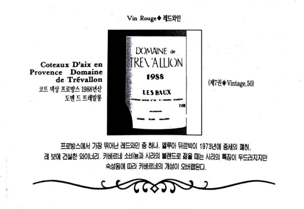 🎬 모임 주제: 프로방스 지방의 강자이자 프랑스 와인역사에서 까베르네 소비뇽과 쉬라의 '반반 블렌딩'을 과감하게 개척한 남프랑스의 슈퍼 투스칸, '도멘 드 트레발롱 루즈 1996빈' 한병 준비해서 같이 마셔보고자 합니다. 참고로 1996빈은 <전설의 100대 와인>에 수록되어 있는 트레발롱의 빈티지와 동일합니다.