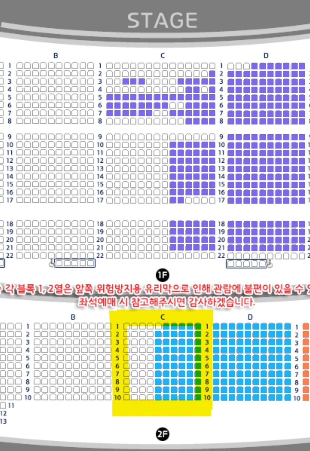 ======= 예매 좌석은 2층 C구역 가운데 자리 4석(아래 그림 참고)