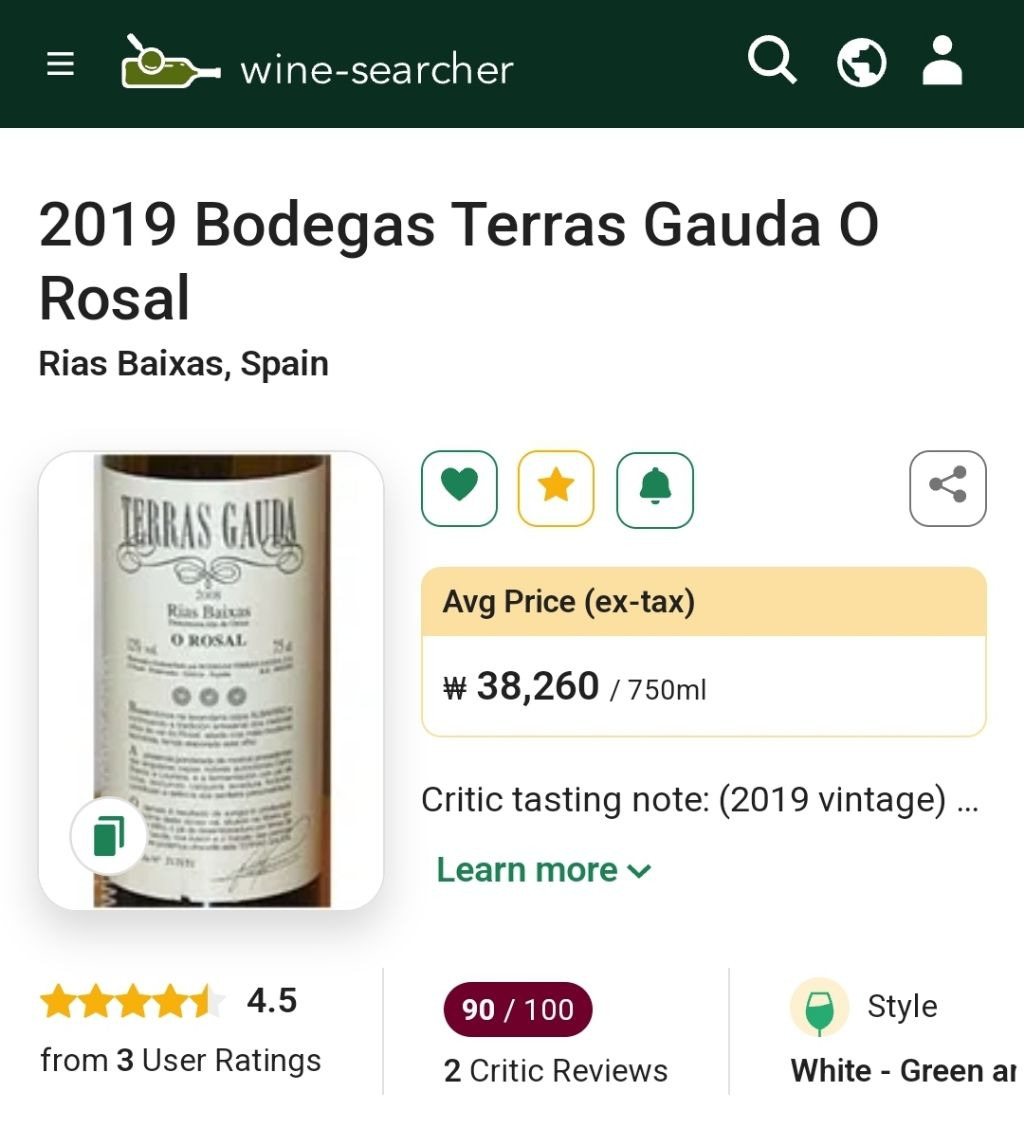 2. 보데가스 떼라스 가우다, 오 로잘 리아스 바이아스 2019 Bodegas Terras Gauda, O Rosal Rias Baixas 2019