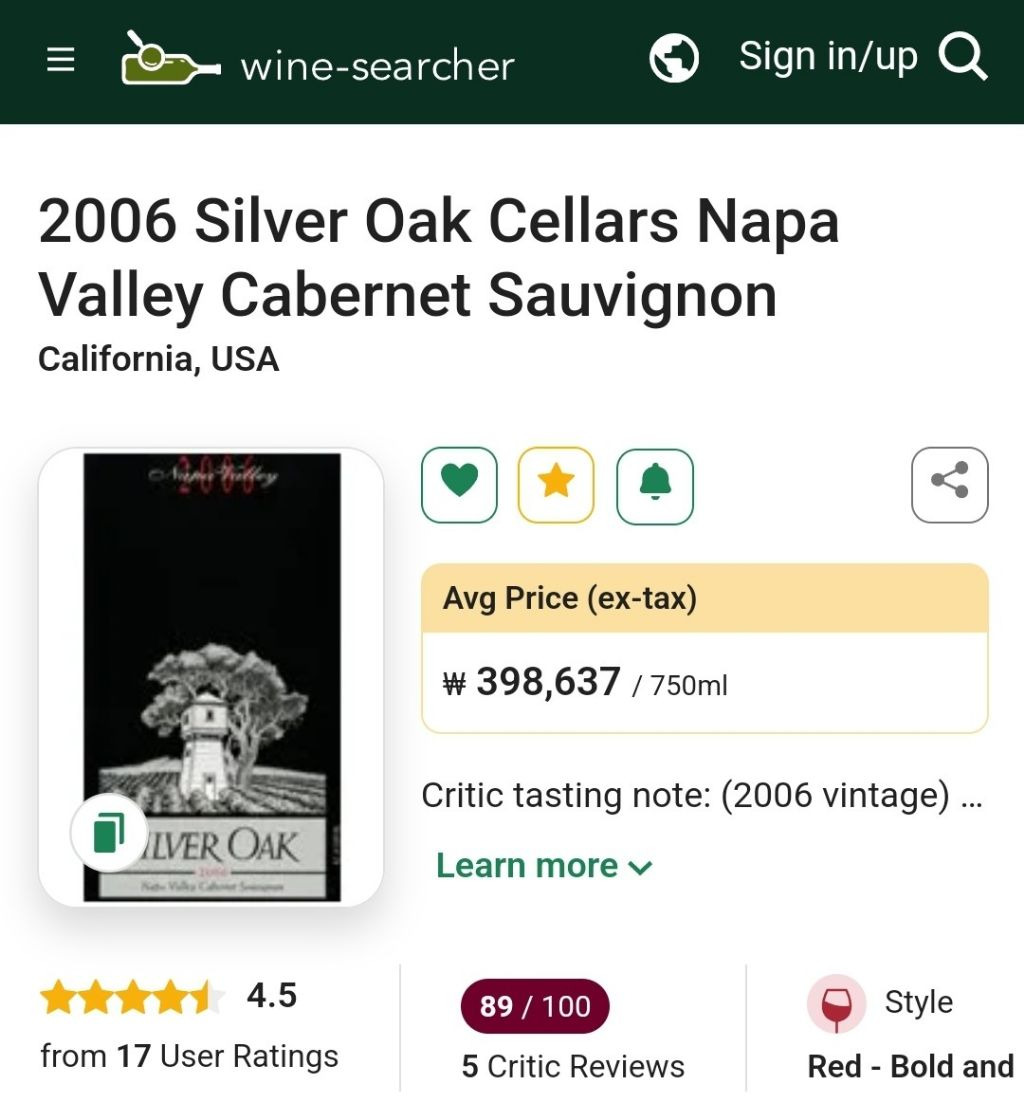 1. 실버 오크 나파 밸리 까베르네 소비뇽 2006 Silver Oak Cellars Napa Valley Cabernet Sauvignon 2006 ㅡ California, USA