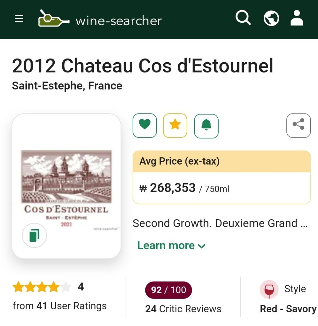 1. 샤또 꼬스 데스뚜르넬 2012 Chateau Cos d'Estournel 2012 ㅡ Saint-Estephe, France / 초보