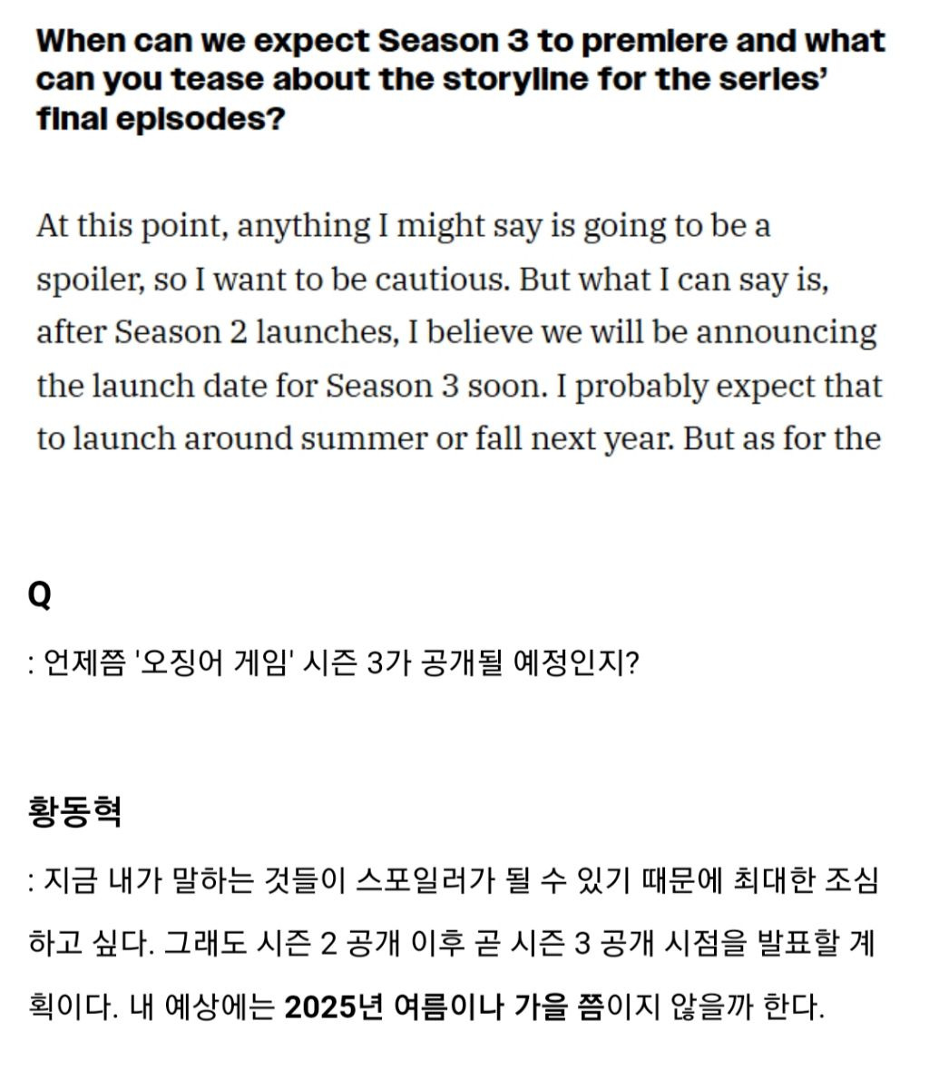 황동혁 감독이 직접 밝힌 오징어게임3 예상 공개일