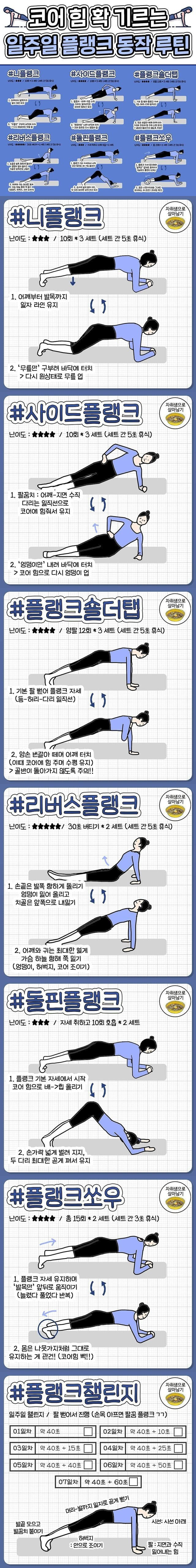 [건강][운동][정보] 코어 힘 확 기르는 일주일 플랭크 동작 루틴